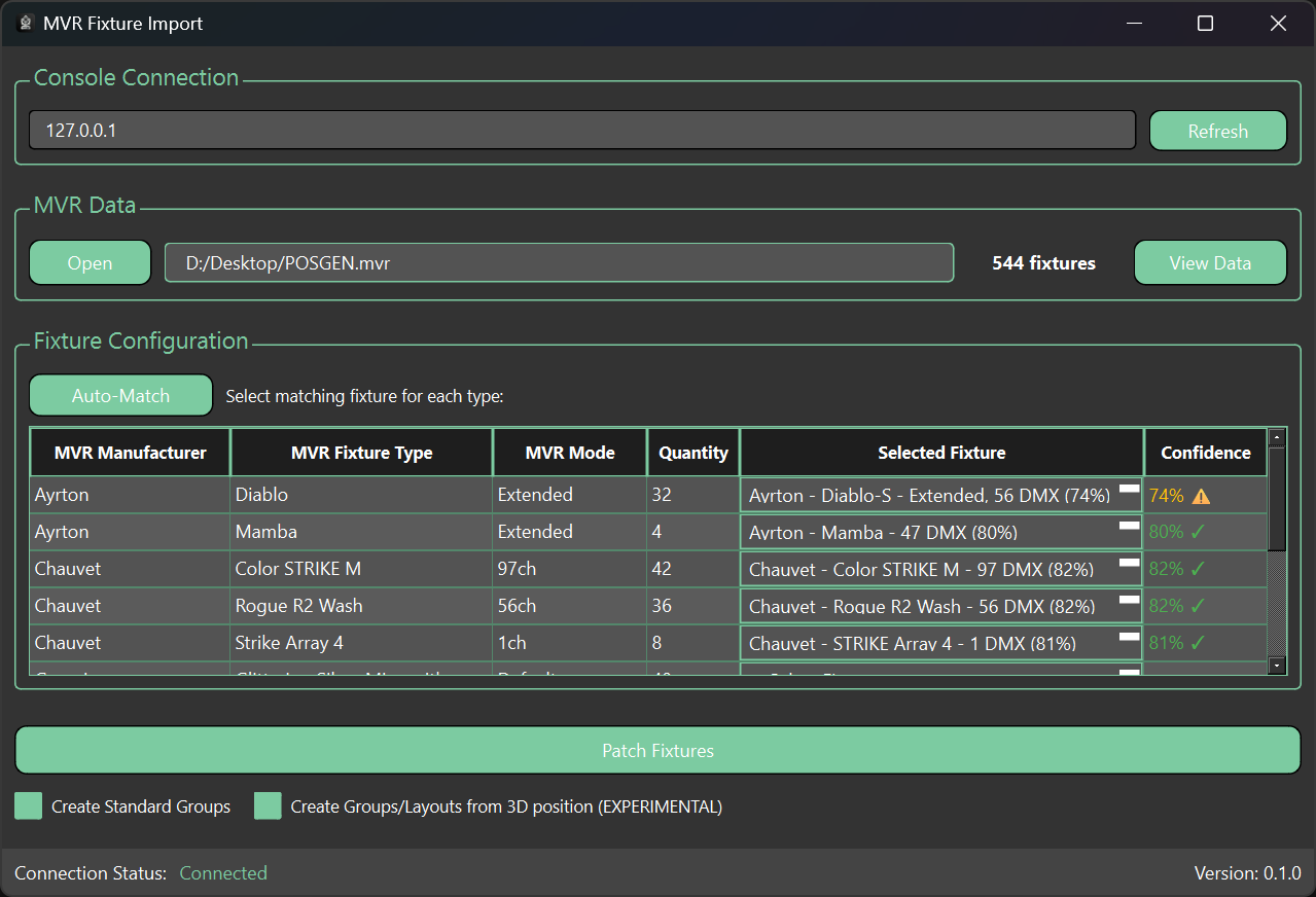 Attempts to automatically match MVR fixtures to Titan fixtures. Intended for fast setup and should be reviewed before import.