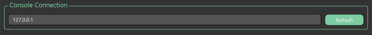 Once connected, the Connect button changes to Refresh. Clicking Refresh updates the lists of fixtures, groups, palettes, and masters from the console.