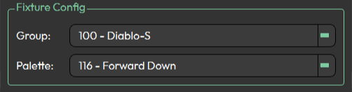 Once a console connection is established, the Fixture Config section populates with data from the connected console. Both a group and a palette must be selected before generating a shape.