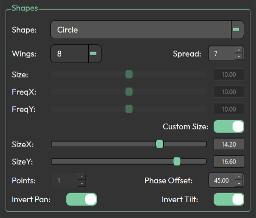 The Shapes section contains 13 parameters that define the generated position pattern.